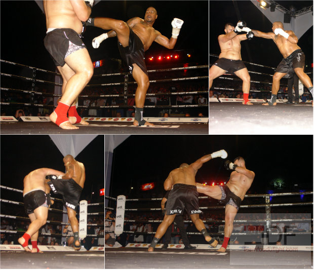 On attendait beaucoup de ce combat franco-français chez les lourds. Cette opposition entre Fabrice Aurieng et Yuksel Ayaydin a tenu toutes ses promesses, le marseillais étant particulièrement bien en jambe. Précis, il s’appuie sur ses poings pour faire mal et trouver des failles. Yuksel use bien du retrait du buste, tente les remises en jambes mais il reste moins actif. « Big boy » ne prend pas de risque lui non plus mais se montre redoutable dans la remise. Sur un crochet splendide il envoie Yuksel Ayaydin au tapis. Compté, ce dernier repart au combat et essaie de trouver la faille dans cette garde compacte du réunionnais qui continue de marquer ses points. Sans se précipiter, Fabrice trouve de nouveau la faille dans la 3ème reprise et inflige un nouveau décompte à son rival. Le match ira tout de même à son terme et Fabrice Aurieng sera déclaré logiquement vainqueur aux points.