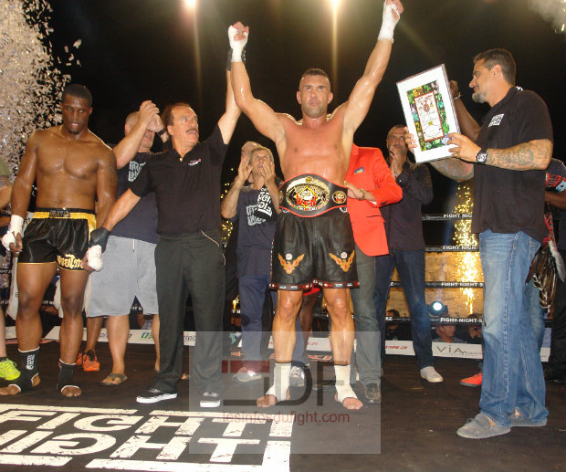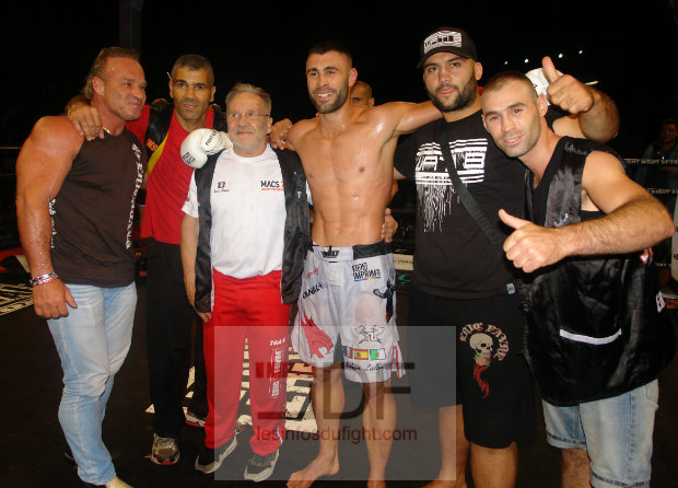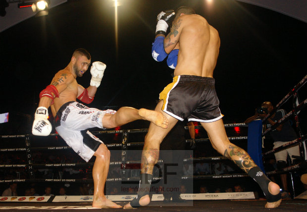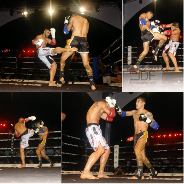 Trois autres français étaient au programme de cette Fight Night. Bakari Tounkara ouvrait la soirée face à l’italien Sharos Huyer. S’il démarre bien la rencontre, Bakari va avoir du mal à gérer la fougue de son rival qui travaille en crochets larges. Avec une boxe peu académique, l’italien empêche le français d’imposer sa boxe et il s’impose finalement aux points. Opposé au thaïlandais Yodwicha Por Boonsit dans le cadre d’un championnat du Monde WMC, Jimmy Vienot s’est montré courageux mais ce n’était pas suffisant face à ce thaïlandais qui a fait l’étalage de sa science du ring. Usant en corps à corps, Yodwicha provoque, danse à la minute de repos en toute décontraction. Il s’impose logiquement aux points en affichant une impressionnante décontraction sur le ring. Enfin chez les lourds, Zinedine Hameur Lain était opposé à l’espagnol Franck Munoz. Le français, fidèle à lui-même s’est montré très entreprenant et a souvent l’initiative. Munoz a la limite de la régularité parfois s’est montré le plus puissant. Il sera déclaré vainqueur aux points de ce match, décision sévère à l’égard de Zinedine qui avait fait le match tout au long des rounds.