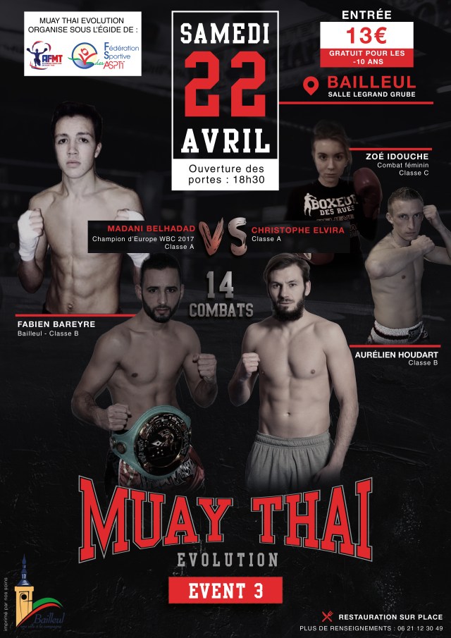 Tony MICHIELLOTTI du Laïdouni Muay Thaï de Fresnes / Escaut s’incline à l’unanimité des juges face à Victor DURANT du Muay Thaï Evolution de Bailleul.