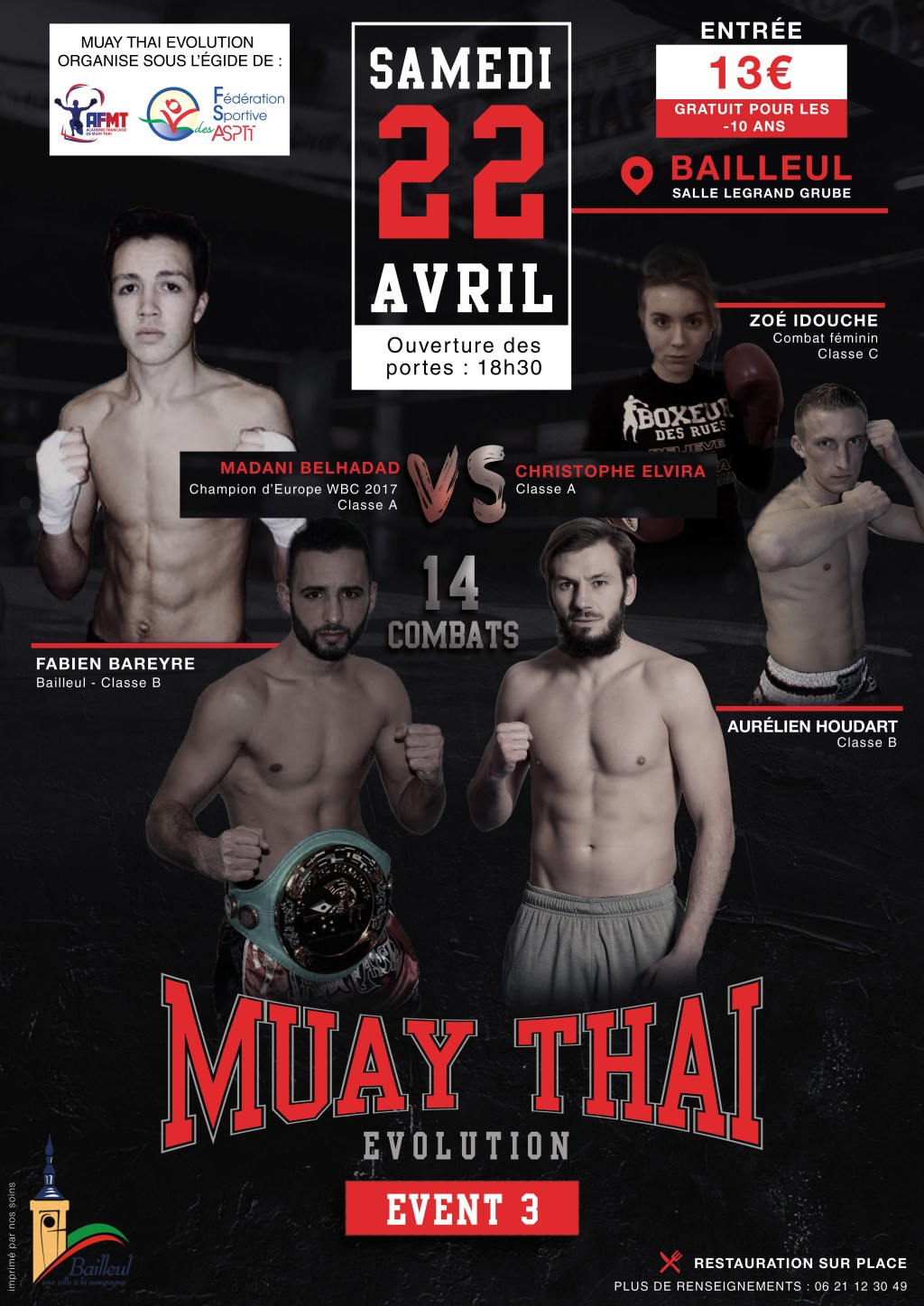 Saï MOUFEK du Muay Thaï de Marly face à Vianney CAMBIER du Muay Thaï Evolution de Bailleul.