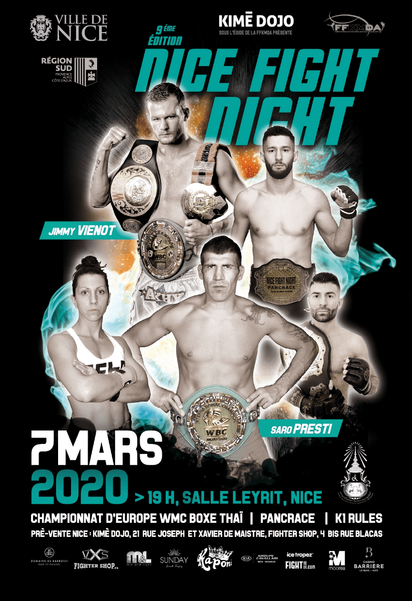 Nice Fight Night belt Pro . Muay thai . 5x3mn . -72,500kg . Saro Presti (Team Presti) vs Jimmy Vienot (Star Boxing)