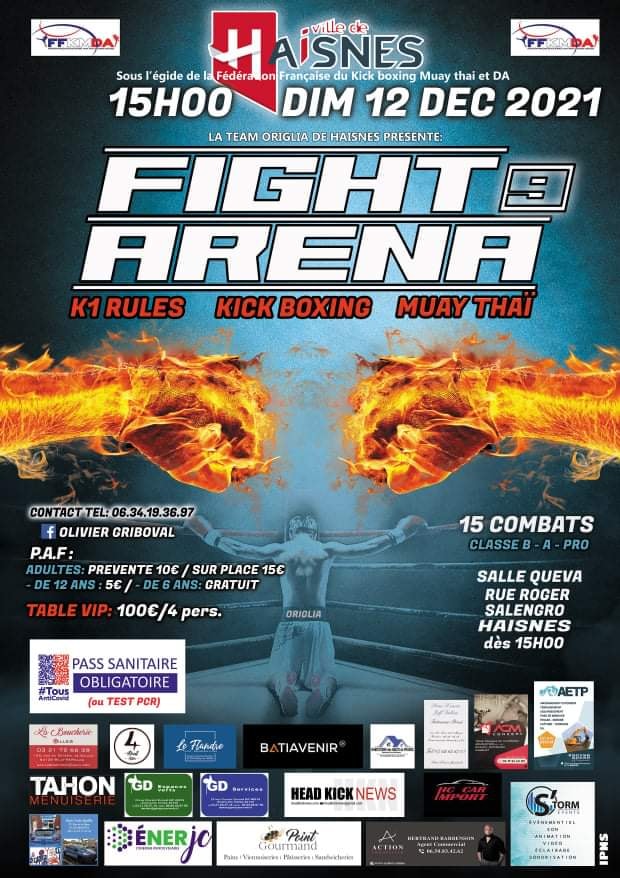 Ceinture FIGHT ARENA en K1 rules classe A pro – 77 kgs en 3 X 3