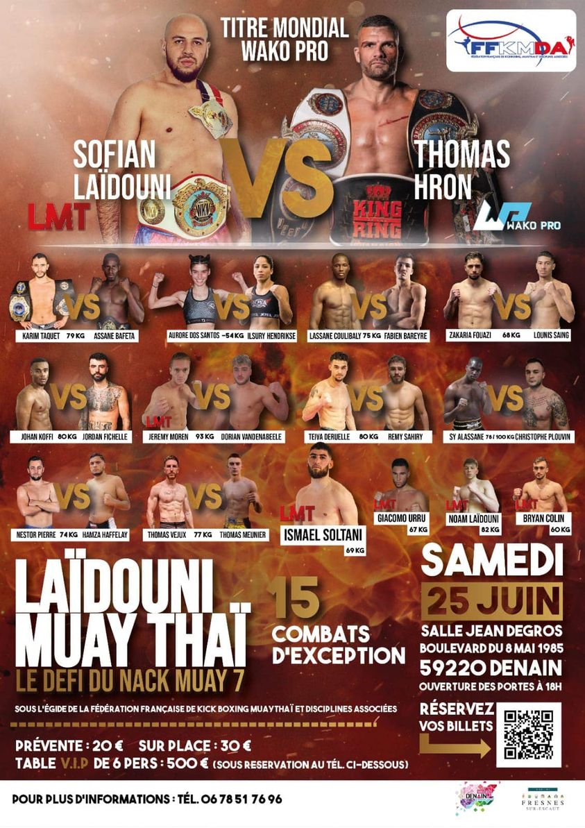 Le tenant du titre Tomas HRON « Rattelsnake » de l’HRON Gym et Colosseum gym (République Tchèque) s’incline à la majorité des juges face à son challenger Sofian LAÏDOUNI du Laïdouni Muay Thaï de Fresnes sur Escaut (France)
